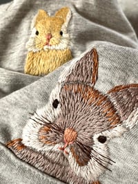 KANIN-BRODERI er en vejledning til broderi på T-shirt eller sweatshirts, eller på fast vævet stof. Et broderi, hvor du kommer til at øve dig på schattérsting, og det "at male med garn".